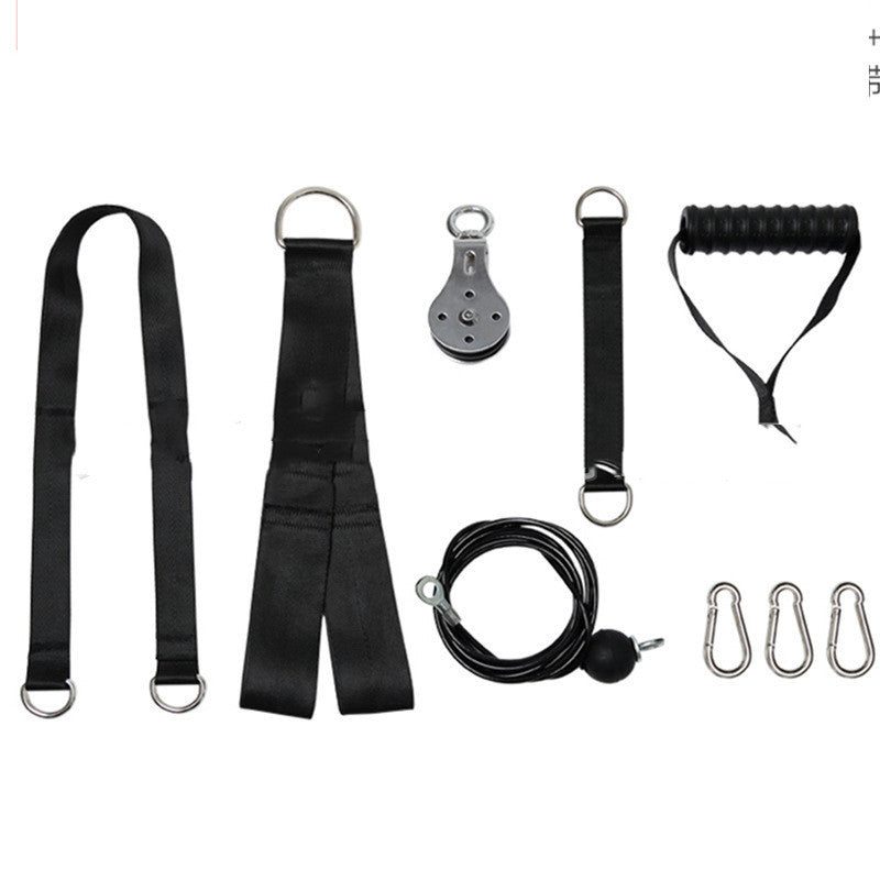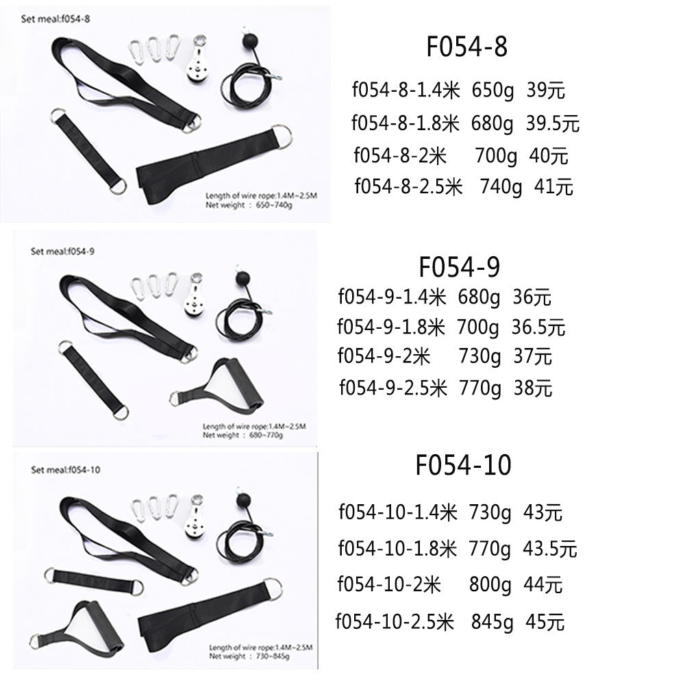 Accessories name 1: Hanging band 2: 3 pieces iron buckle 3: Wire rope (Awirerope) 4: Triceps strap 5: Dumbbell tray